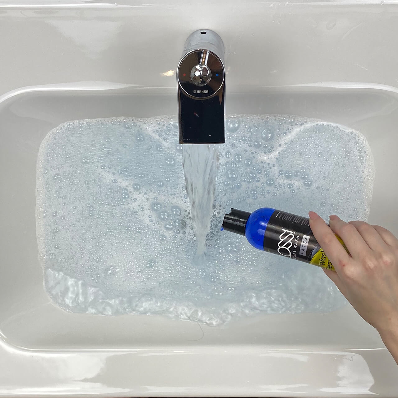 Mit diesem Spezial-Waschmittel ist die Latex-Reinigung in wenigen Minuten erledigt.